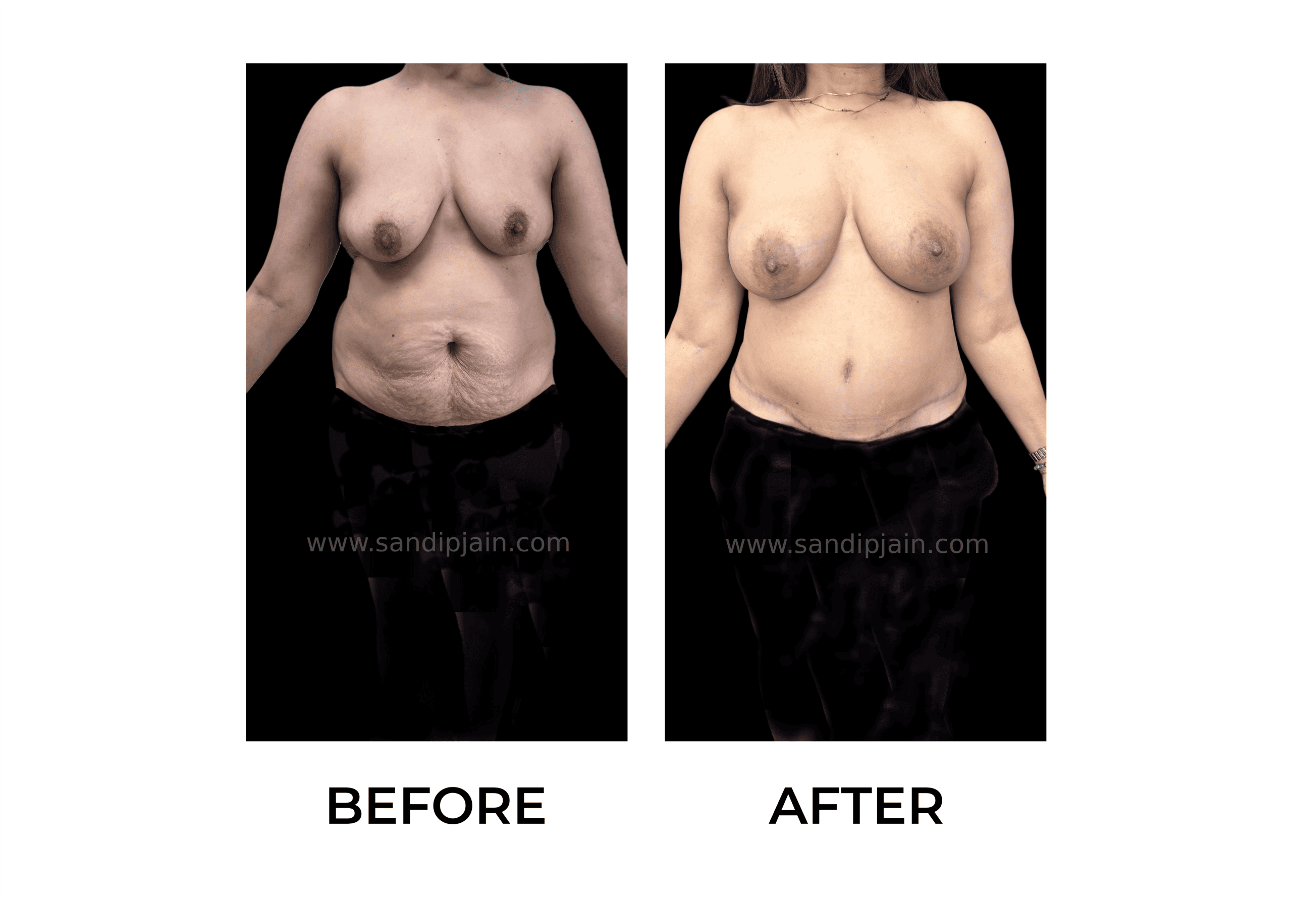 7Following multiple pregnancy there is sagging and deflation of the breast and sagging of the tummy area. Following tummy tuck and breast lift and enhancement.